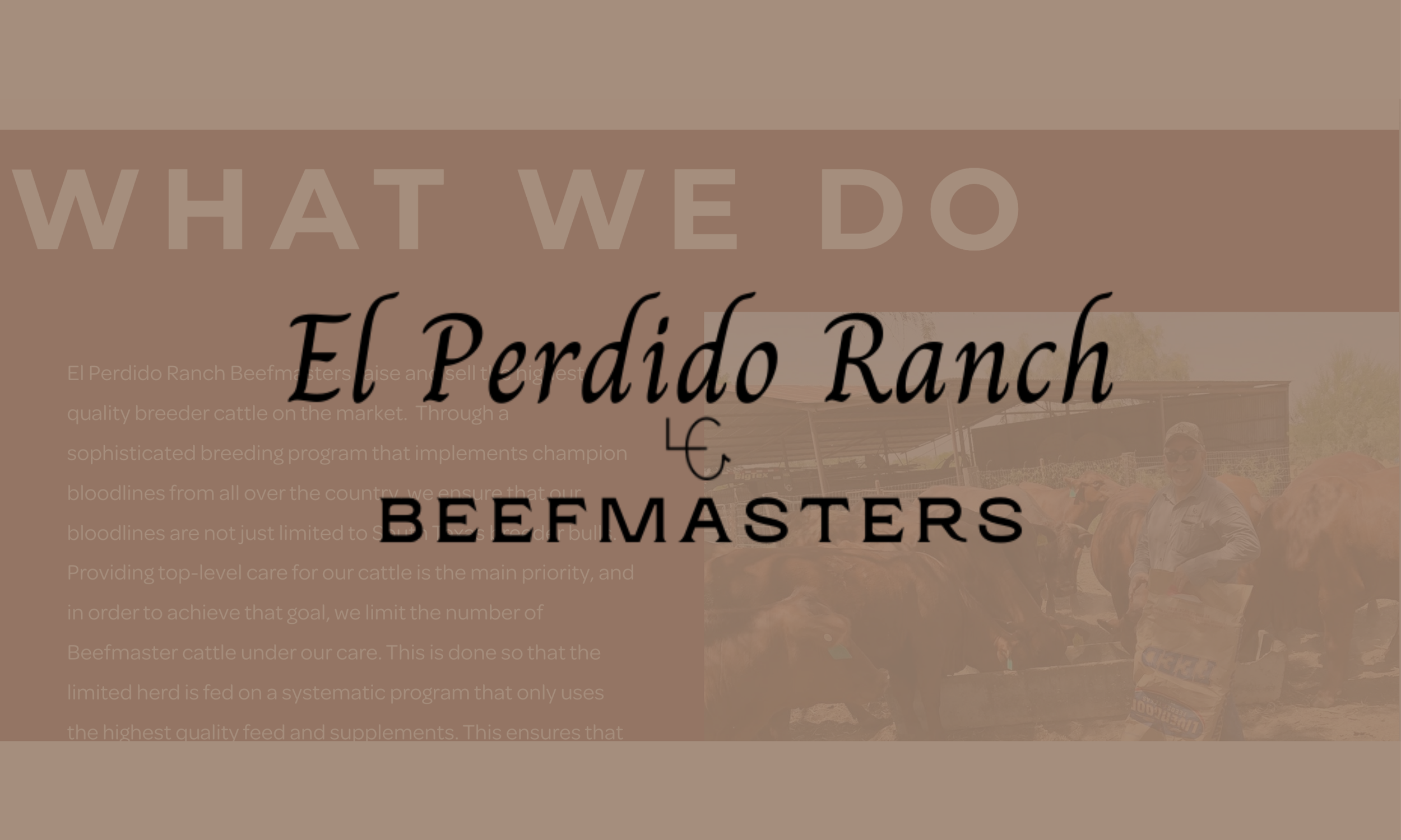 El Perdido Ranch is a family-owned cattle ranch in South Texas specializing in breeding and raising high-quality Beefmaster cattle for sale to livestock producers. Rooted in a generational ranching tradition, the business focuses on a selective herd with champion bloodlines, exceptional animal care, and a quality-over-quantity philosophy that has earned repeat customers in the beef and breeder cattle market. The ranch maintains its operations through careful feeding, health management, and preservation of superior disposition traits in its cattle.